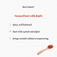 Sprinkle lightly to add heat to soups, stir-fries, and stews. Blend into marinades, sauces, and spice mixes for an extra kick. Use with care — a little goes a long way.